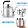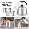 Odoland 4L Camping Kettle Set with 4 Cups, Durable Stainless Steel Camp Tea Coffee Pot with 4 Stainless Steel Cups for Hiking, Backpacking, Camping and Picnic, Carrying Bag Included