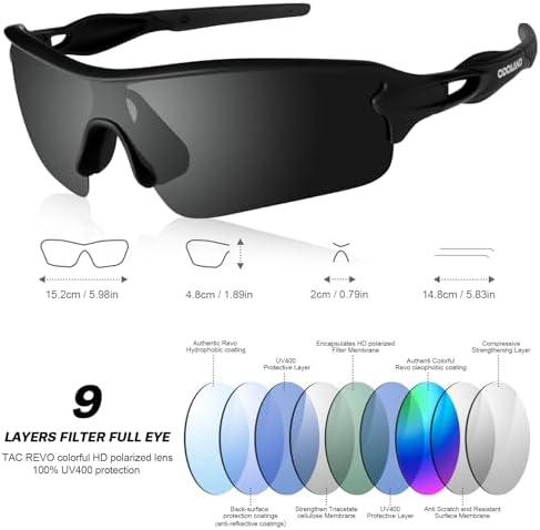 Odoland Polarized Cycling Glasses Sports Sunglasses,Interchangeable Lense,UV400 Baseball MTB Sports Glasses for Men Women