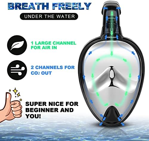 【All in One Snorkeling Package】Odoland snorkel set included 1 pair of adjustable fins, 1 x full face diving mask, 1x dry top snorkel, 1 x mesh bag. One package fits all your need of snorkeling. Scuba mask equipped with camera mount, you can use Gro Pro camera to capture superior panoramic under water adventures.